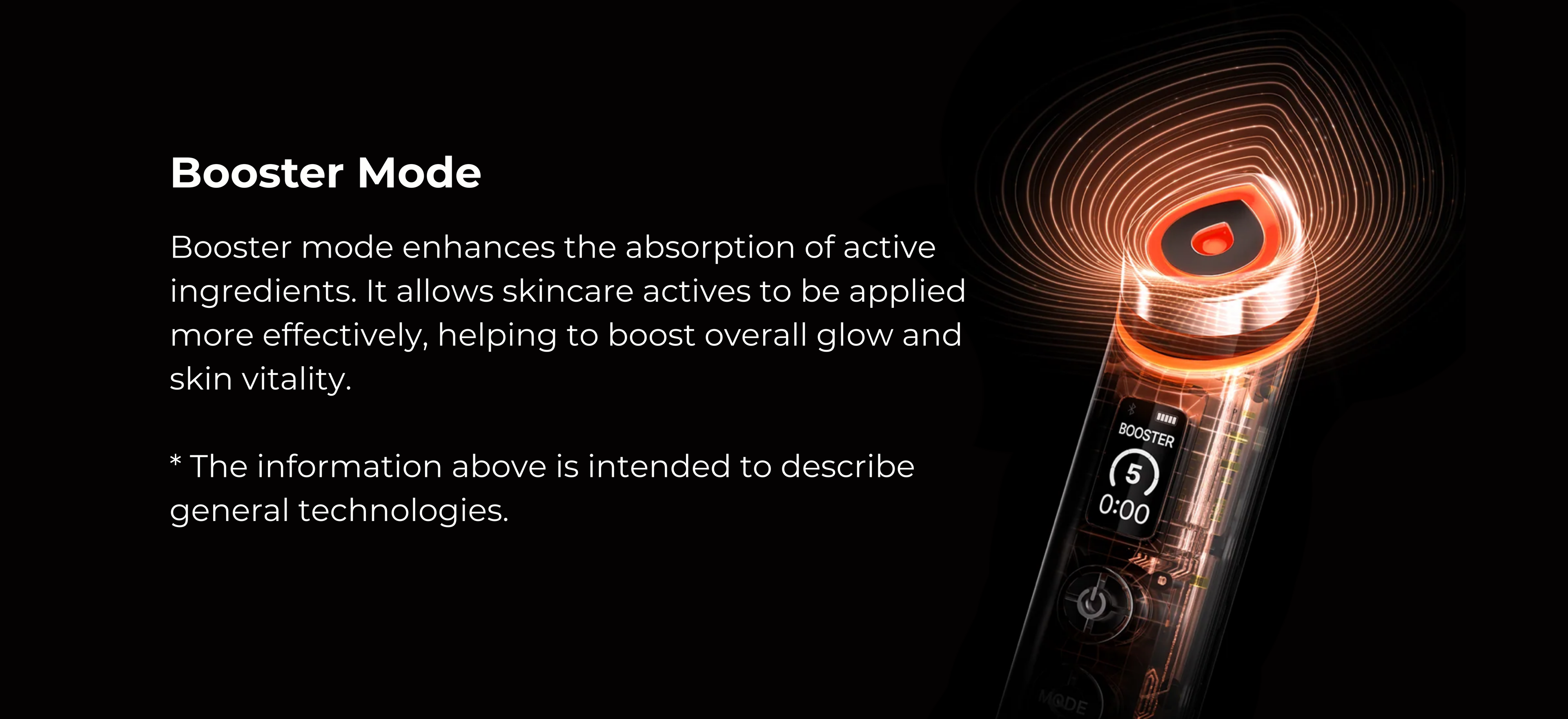 The Booster Pro uses EMS (Electrical Muscle Stimulation) and LED technology to help improve skin firmness and enhance ingredient absorption.