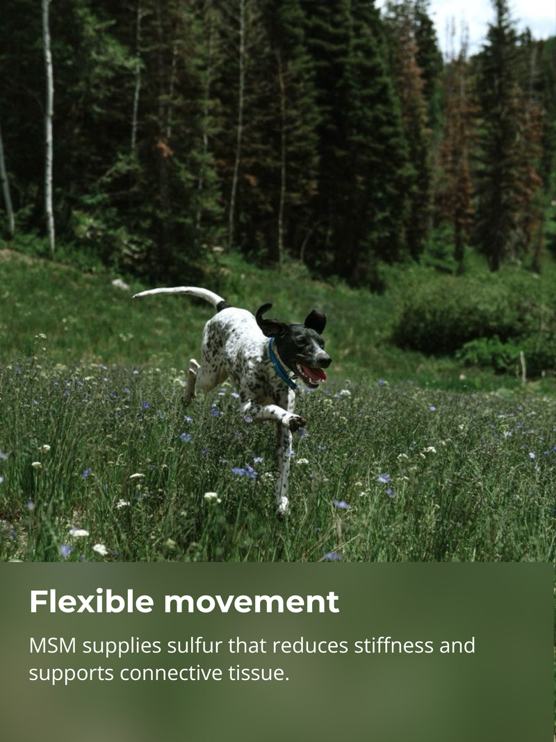 Joint cushioning strengthens as MSM supports inflammation control, allowing smoother motion, easier climbing, better stretching and visibly improved flexibility during play, walks and everyday movement routines.