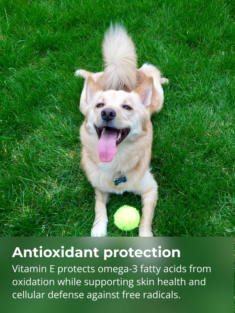 Protects cells from oxidative stress and helps maintain skin and coat health.