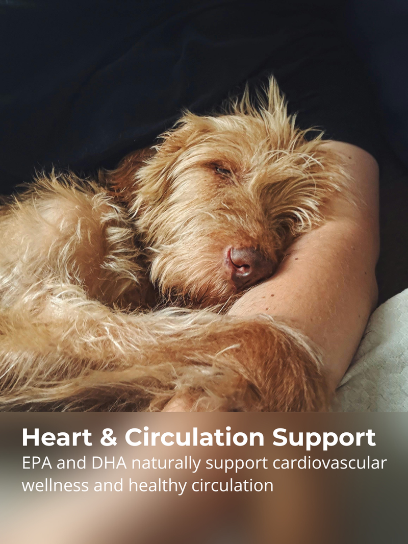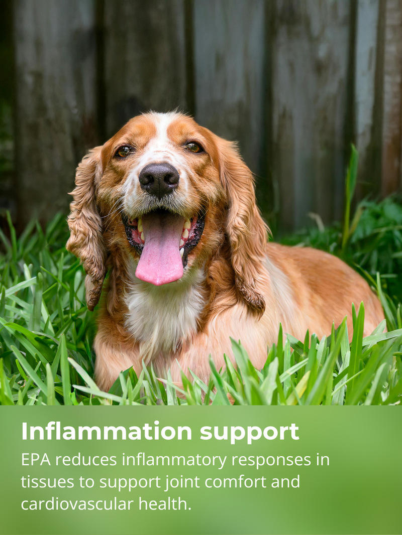 EPA supports circulation and regulates inflammatory responses, easing joint stiffness, supporting heart rhythm, improving endurance and promoting smoother movement during play, walks and everyday physical activity.
